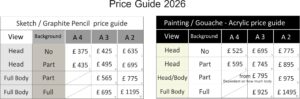 Due to the time taken on a portrait, full payment is required before work is undertaken, I will send you updates as the process goes along to keep you up to date with progress. Please see below for the current 2026 price list. Completed commissions can be posted onto you using special picture boxes, they are basically two double wall boxes which slide into one another for added protection, I have used them numerous times with no problems, the cost for this service is £18.00.